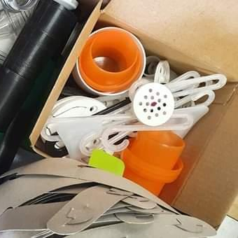 Our boxes are not just for children either – if you know someone who loves to sew or craft, we have all sorts of fabrics, lace, zips, buttons and so on. We have a variety of papers, from wallpaper samples to stickers, postcards, photos, albums, cardstock, envelopes…we have nuts and bolts and strange plastic shapes (perfect for making steam punk accessories)… have a look a just a sample. Tell our volunteers what you want the box for in the comment section of the order form (such as the age of your children, or if you have a particular craft in mind) and they will source a bumper box of creative fun for you!
